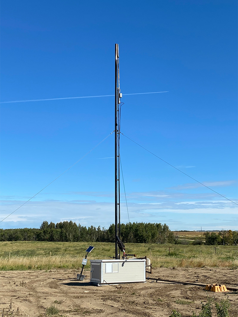 Benoit Rentals Ltd. offers a number of different flarestack design options for rental or purchase. Units include Guy-Wire Flarestack Systems, Portable Wheeled Flarestack Systems, and Self-Supporting (Freestanding) Flarestack Systems. Stock unit sizes ranze from 3″ to 6″ in diameter and are up to 60′ tall. The recommended flowrate capacities range from 2.5mmcf/day through to 10mmscf/day.