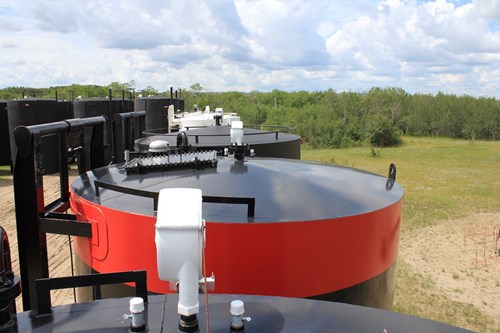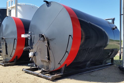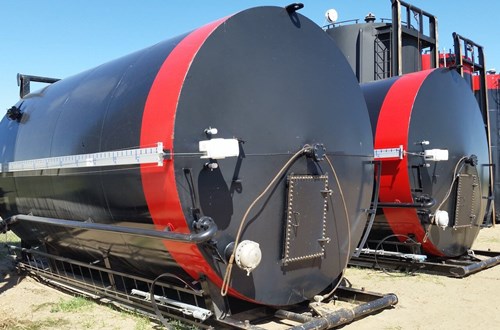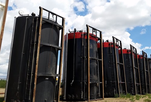 Our Standard 400bbl (64m3) Production Tanks are built to API 12F and are 12’ in diameter and 20’ feet tall. Units have a 8” 3 saddle “L” skid complete with a flat ¼” floor and 3/16” shell and roof.
