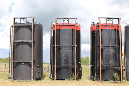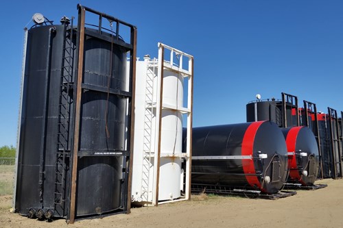 Our Standard 400bbl (64m3) FRAC Tanks are built to API 12F and are 12’ in diameter and 20’ feet tall. Units have a 8” 3 saddle “L” skid complete with a sloped ¼” floor and 3/16” shell and roof.