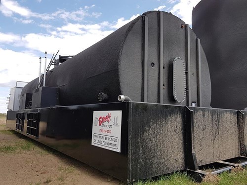 Our Standard 800bbl (128m3) Horizontal Production Tanks are built to API 12F and are designed to be a “plug and play” production unit. The full system is setup with (2) horizontal 400bbl insulated tanks which are fully self-contained and AER Compliant within the integrated skid/containment. Units are fully skidded and are very easily setup onsite within hours of arrival.